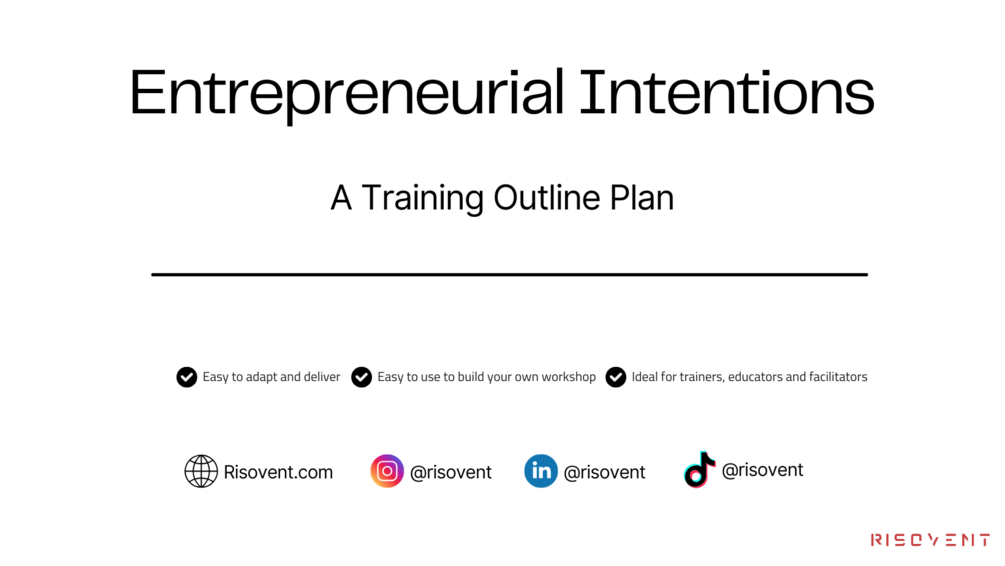 This is a training outline plan, created by RISOVENT LTD, to provide a framework and outline for designing a training workshop focused on entrepreneurial intentions.